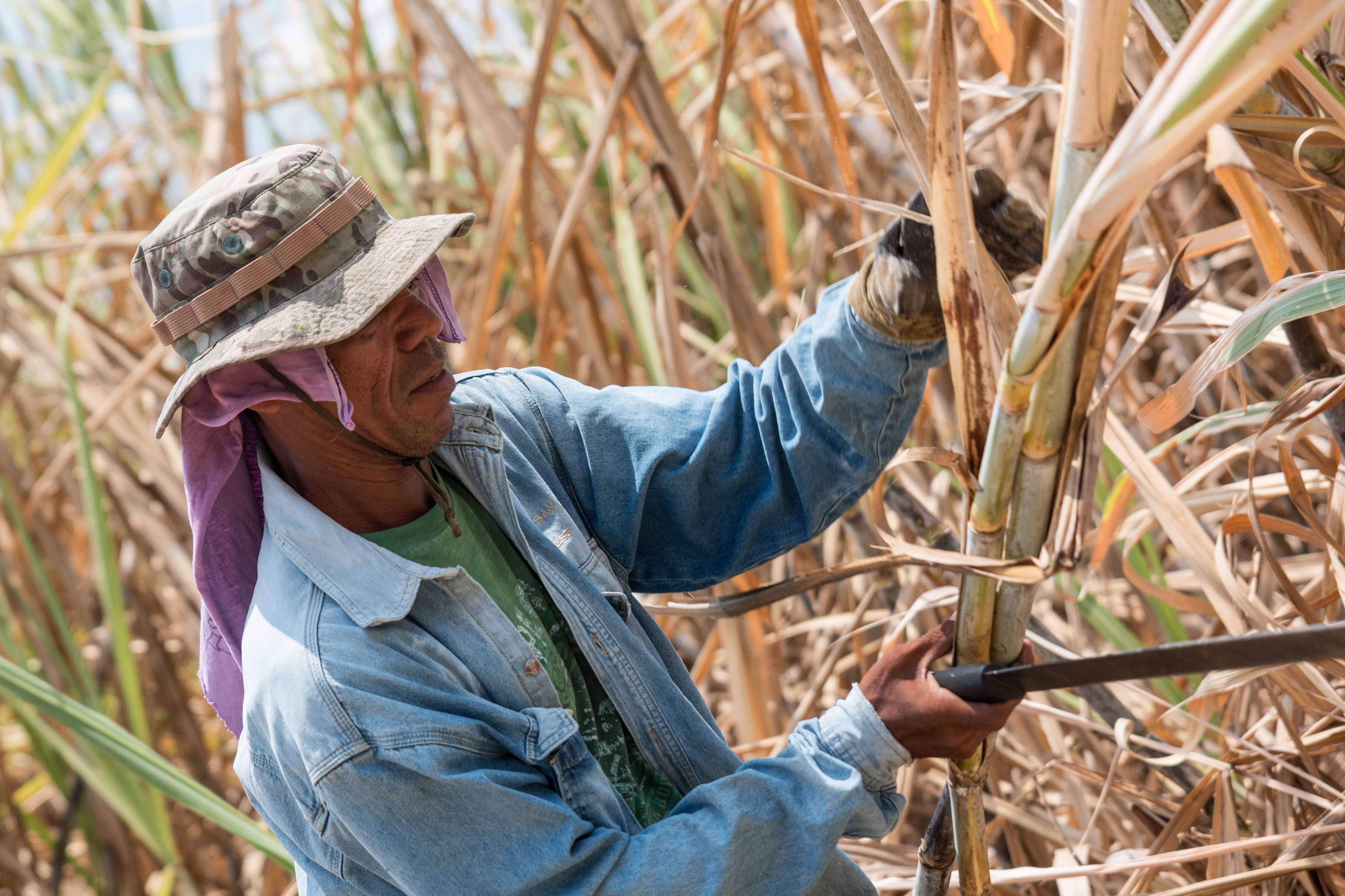 Hand harvesting sugar cane at Ron Abuelo